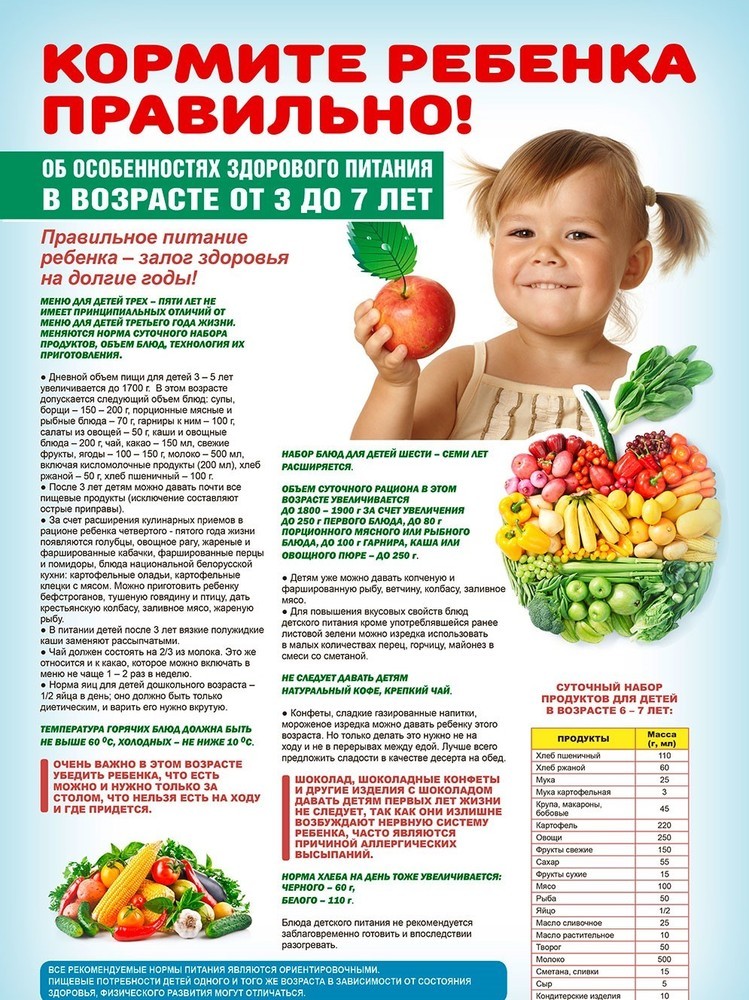 - составление меню здорового питания, соответствующего возрасту детей;